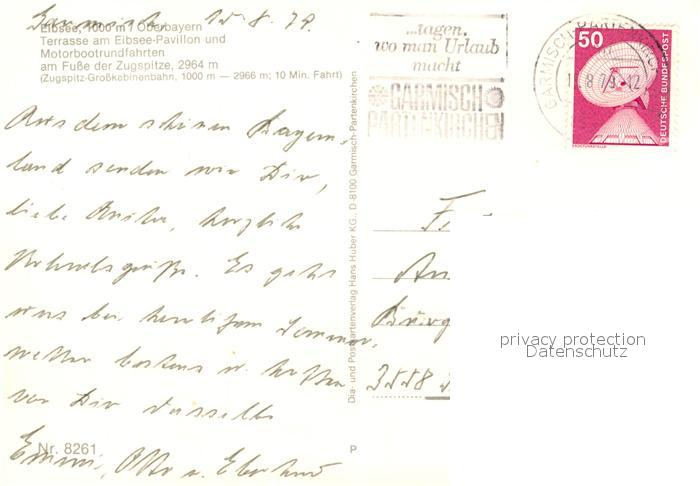 73156377 alte Postkarte Eibsee Eibsee-Pavillon Motorbootrundfahrten Zugspitze Luftseilbahn postalisch gelaufen Erhaltung siehe scans [NatalD47] KatCode: 11110009180118
