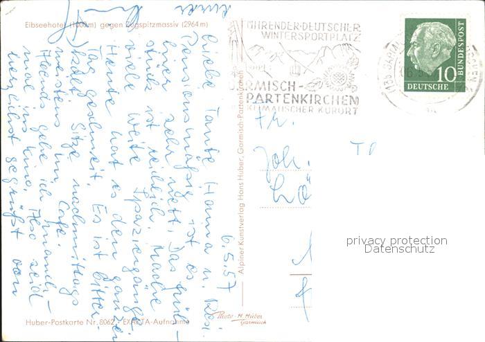 72583905 alte Postkarte Eibsee Eibseehotel gegen Zugspitzmassiv postalisch gelaufen Erhaltung siehe scans [LiesaD40] KatCode: 11110009180118