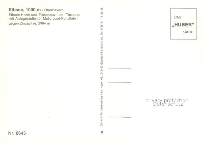 73010094 Eibsee Eibseehotel und Eibseepavillon Terrasse mit Anlegestelle Zugspitze postalisch nicht gelaufen Erhaltung siehe scans [WerneD78] KatCode: 11110009180118