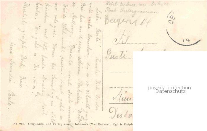 72794194 alte Postkarte Eibsee Hotel Pension Eibsee mit Zugspitze postalisch gelaufen Erhaltung siehe scans [LiesaD40] KatCode: 11110009180118