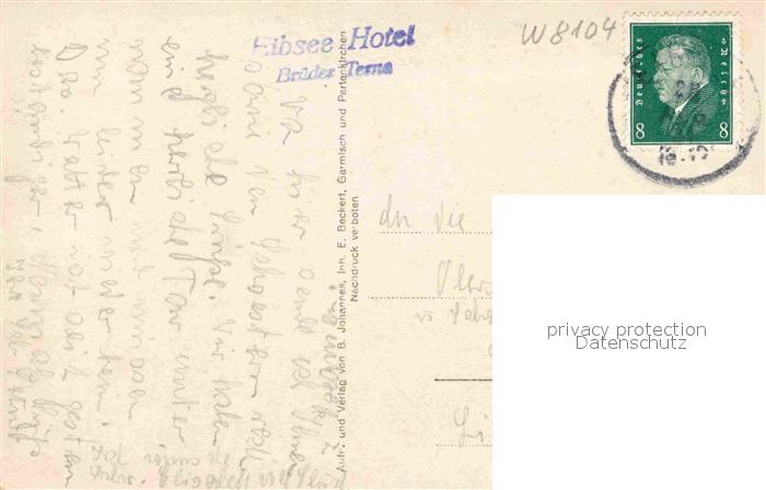 72705873 alte Postkarte Eibsee Hotel und Pension Alpenpanorama postalisch gelaufen Erhaltung siehe scans [FriedD77] KatCode: 11110009180118