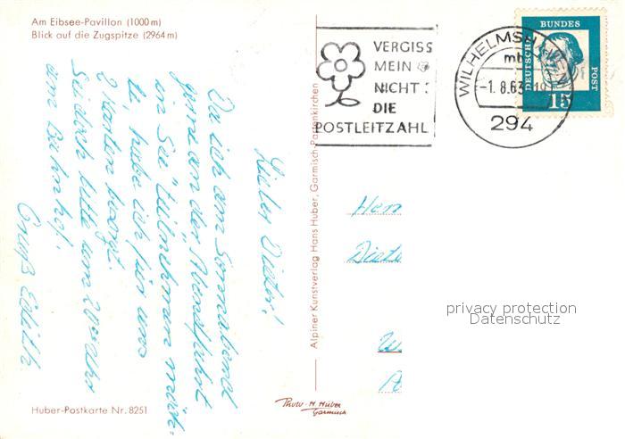 73093903 alte Postkarte Eibsee Pavillon Zugspitze postalisch gelaufen Erhaltung siehe scans [KathaD81] KatCode: 11110009180118