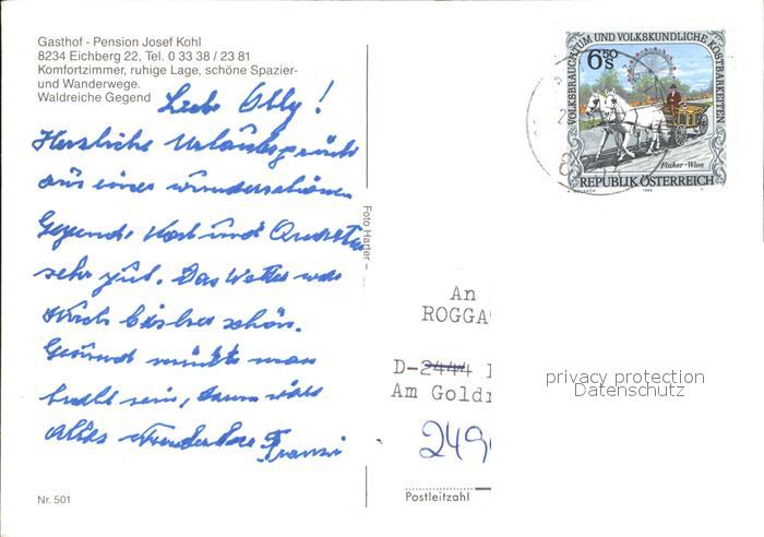 72496400 alte Postkarte Eichberg Traitsching Gasthof Pension Kohl Gastraum Eichbergerhof postalisch gelaufen Erhaltung siehe scans KatCode: 11110009372116