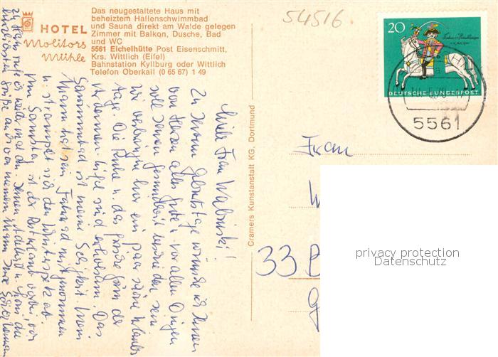 73867762 alte Postkarte Eichelhuette Hotel Molitors Muehle Restaurant Hallenbad Teich postalisch gelaufen Erhaltung siehe scans [FriedD77] KatCode: 11110007231026