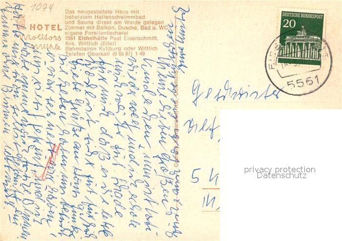 73204325 alte Postkarte Eichelhuette Hotel Restaurant Molitors Muehle postalisch gelaufen Erhaltung siehe scans [FriedD77] KatCode: 11110007231026