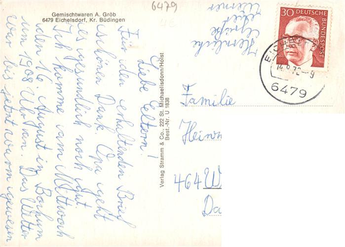 73912849 alte Postkarte Eichelsdorf Vogelsberg Hessen Kirche Ortspartie Gedenkstaette postalisch gelaufen Erhaltung siehe scans [FriedD77] KatCode: 11110006440016