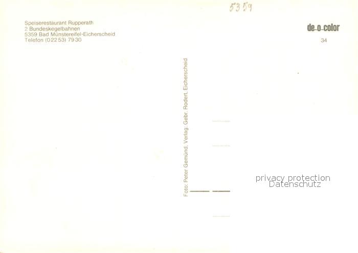 73643587 Eicherscheid Bad Muenstereifel Speiserestaurant Rupperath Kegelbahn Gaststube Bar postalisch nicht gelaufen Erhaltung siehe scans [WerneD78] KatCode: 11110005366004