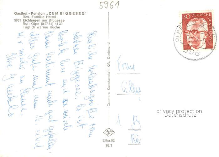 73858271 alte Postkarte Eichhagen Biggesee Gasthof Pension zum Biggesee Gasthaus Fliegeraufnahme postalisch gelaufen Erhaltung siehe scans [FriedD77] KatCode: 11110005966024