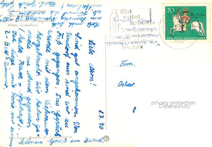 73025679 alte Postkarte Eichhofen Regensburg Dioezesan Exerzitienheim Altbau postalisch gelaufen Erhaltung siehe scans [KathaD81] KatCode: 11110009375175