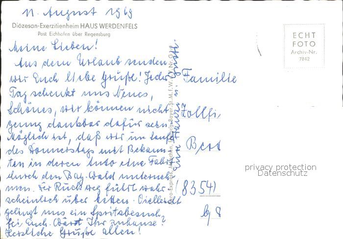 72067940 alte Postkarte Eichhofen Regensburg Dioezesan Exerzitienheim Haus Werdenfels Fliegeraufnahme postalisch gelaufen Erhaltung siehe scans KatCode: 11110009375175