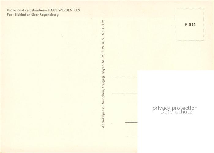 73647151 Eichhofen Regensburg Dioezesan Exerzitienheim Haus Werdenfels Fliegeraufnahme postalisch nicht gelaufen Erhaltung siehe scans [WerneD78] KatCode: 11110009375175