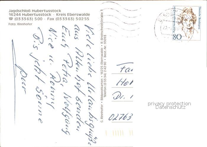 72338677 alte Postkarte Eichhorst Eberswalde Jagdschloss Hubertusstock postalisch gelaufen Erhaltung siehe scans KatCode: 11110012060198