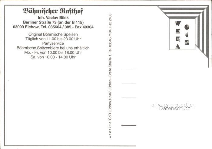 72429165 Eichow Boehmischer Rasthof Restaurant Koch postalisch nicht gelaufen Erhaltung siehe scans KatCode: 11110012071244
