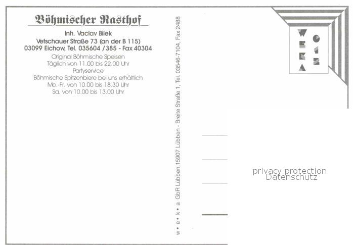 72772038 Eichow Boehmischer Rasthof postalisch nicht gelaufen Erhaltung siehe scans [LiesaD40] KatCode: 11110012071244