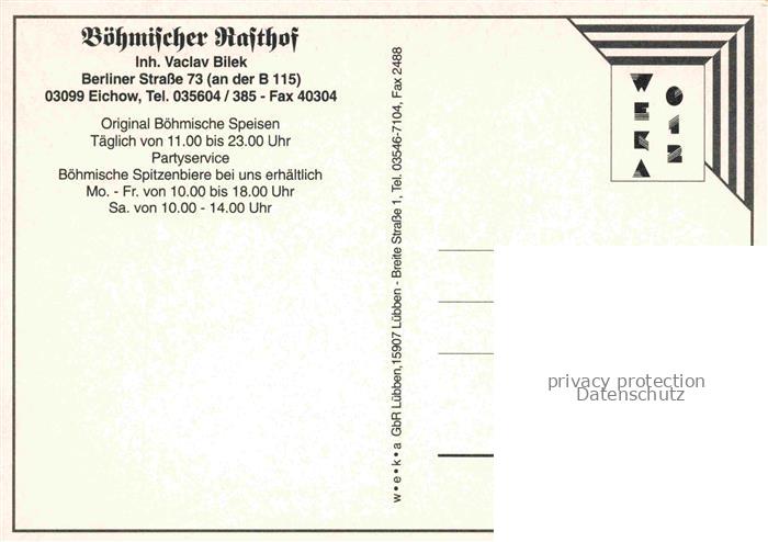 74027639 Eichow Kolkwitz Brandenburg Boehmischer Gasthof Restaurant Koch postalisch nicht gelaufen Erhaltung siehe scans [FriedD77] KatCode: 11110012071244