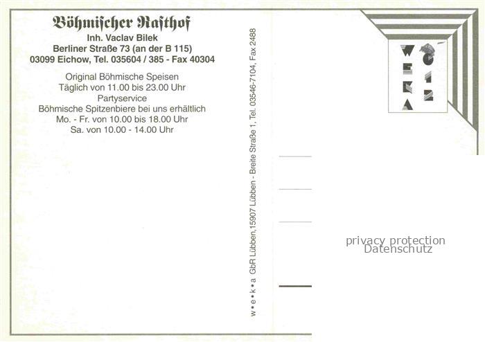 74029234 Eichow Kolkwitz Brandenburg Boehmischer Rasthof Gaststube Koch postalisch nicht gelaufen Erhaltung siehe scans [FriedD77] KatCode: 11110012071244