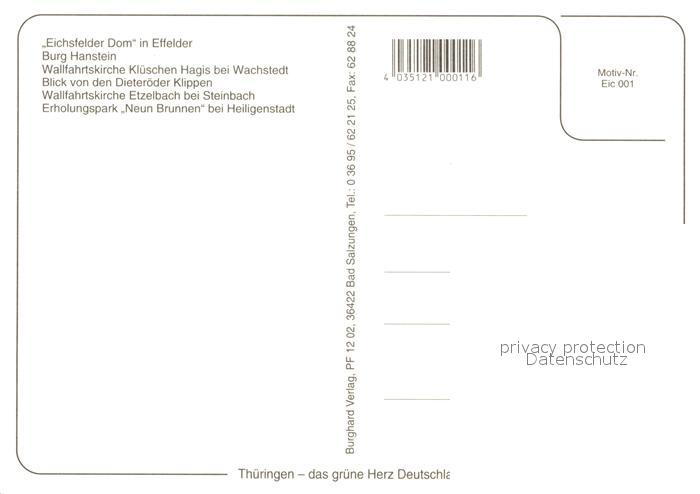 73263876 Eichsfeld Duderstadt Dom Burg Hanstein Wallfartskirche Klueschen Dieteroeder Klippen Wallfahrtskirche Etzelbach Erholungspark Neun Brunnen postalisch nicht gelaufen Erhaltung siehe scans [WerneD78] KatCode: 11110003152007