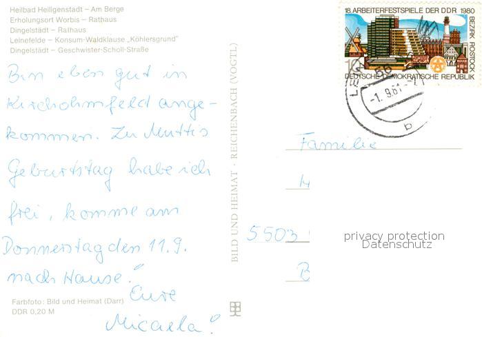 73127590 alte Postkarte Eichsfeld Duderstadt Heiligenstadt Worbis Rathaus Dingelstadt Rathaus Leinefelde Waldklause postalisch gelaufen Erhaltung siehe scans [KathaD81] KatCode: 11110003152007