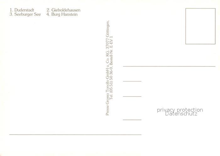 73263877 Eichsfeld Duderstadt Marktplatz Seeburger See Gieboldehausen Burg Hanstein postalisch nicht gelaufen Erhaltung siehe scans [WerneD78] KatCode: 11110003152007