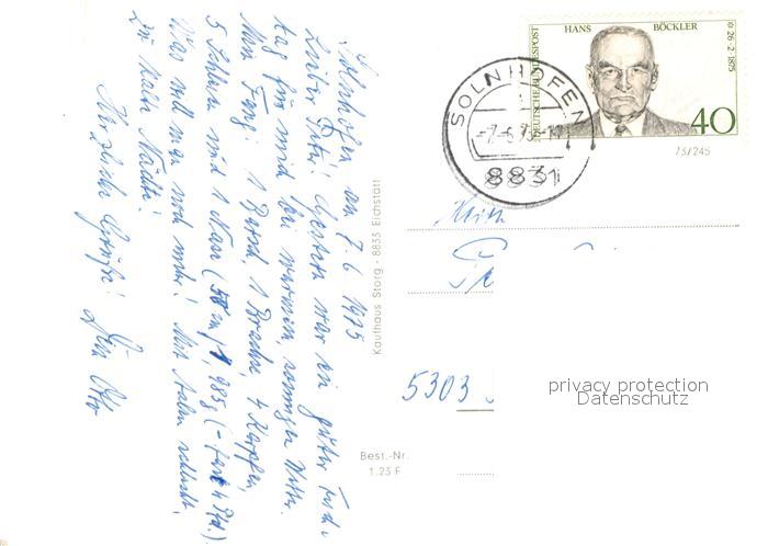 72917365 alte Postkarte Eichstaett Oberbayern postalisch gelaufen Erhaltung siehe scans [PaolaD17] KatCode: 11110009176123