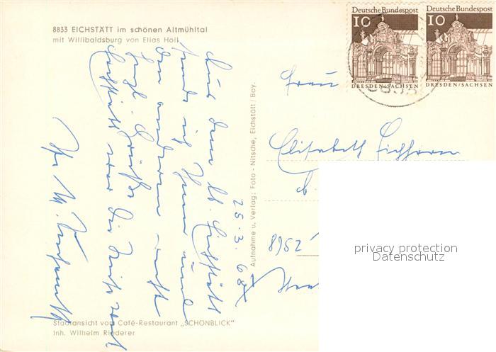 73656162 alte Postkarte Eichstaett Oberbayern Altmuehltal mit Willibaldsburg Fliegeraufnahme postalisch gelaufen Erhaltung siehe scans [WerneD78] KatCode: 11110009176123