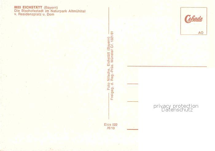 72900831 Eichstaett Oberbayern Fliegeraufnahme mit Residenplatz und Dom postalisch nicht gelaufen Erhaltung siehe scans [WerneD78] KatCode: 11110009176123
