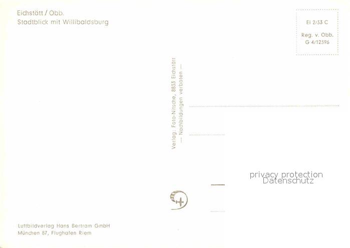 72856870 Eichstaett Oberbayern Fliegeraufnahme Stadtblick mit Willibaldsburg postalisch nicht gelaufen Erhaltung siehe scans [AndreD76] KatCode: 11110009176123