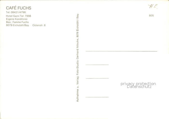 72527835 Eichstaett Oberbayern Hotel Garni Cafe Fuchs postalisch nicht gelaufen Erhaltung siehe scans KatCode: 11110009176123