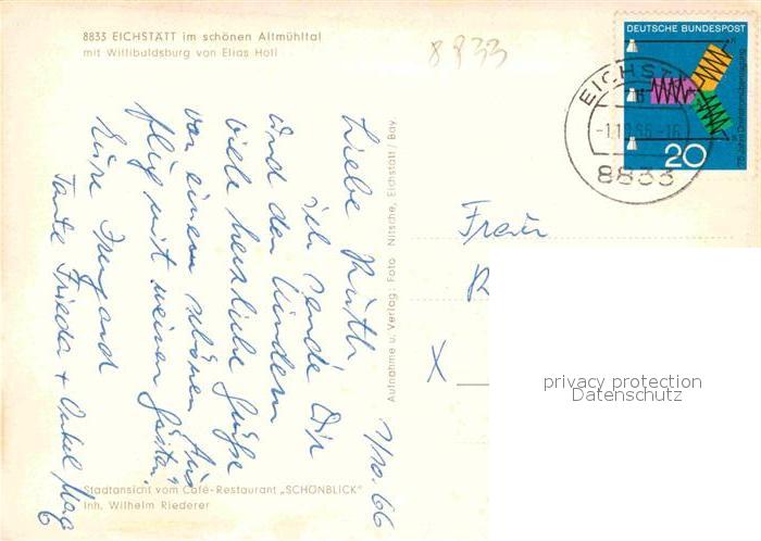 72895520 alte Postkarte Eichstaett Oberbayern im Altmuehltag mit Willibaldsburg postalisch gelaufen Erhaltung siehe scans [WerneD78] KatCode: 11110009176123