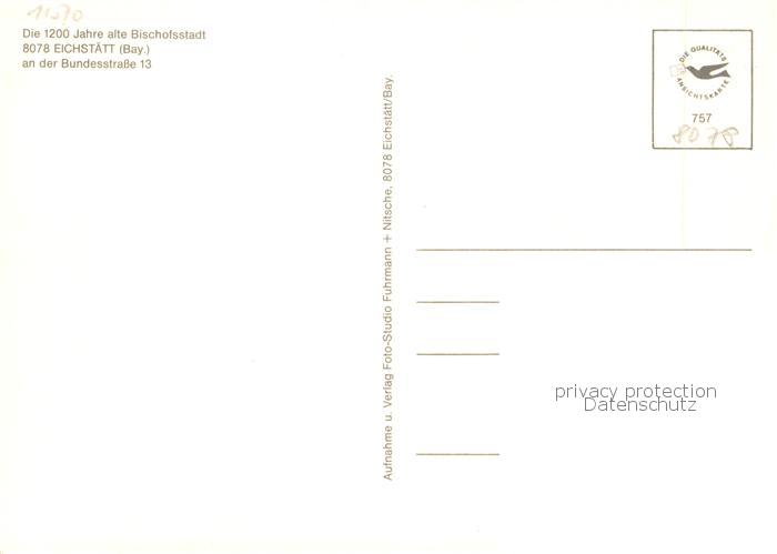 73867590 Eichstaett Oberbayern Marktplatz Willibaldsbrunnen Hotel Adler Residenzplatz Mariensaeule Dom Willibaldsburg Hofgarten Kirchlische Gesamthochschule Blick zum Dom vom Seidlkreuz postalisch nicht gelaufen Erhaltung siehe scans [WerneD78] KatCode: 11110009176123