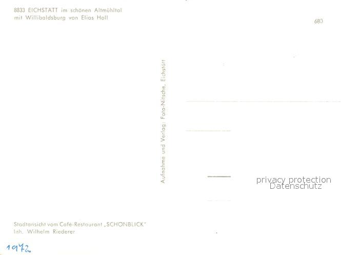 73647147 Eichstaett Oberbayern Panorama mit Willibaldsburg von Elias Hall postalisch nicht gelaufen Erhaltung siehe scans [WerneD78] KatCode: 11110009176123