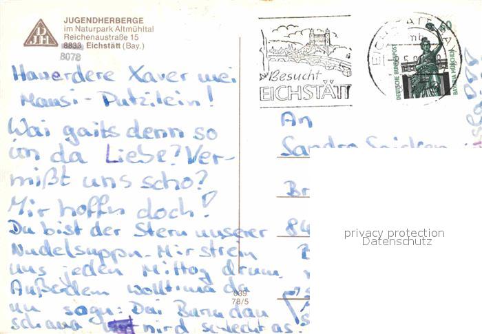 72740692 alte Postkarte Eichstaett Oberbayern Residenzplatz Dom Jugendherberge Willibaldsburg St Walburg Altmuehlpartie postalisch gelaufen Erhaltung siehe scans [WerneD78] KatCode: 11110009176123