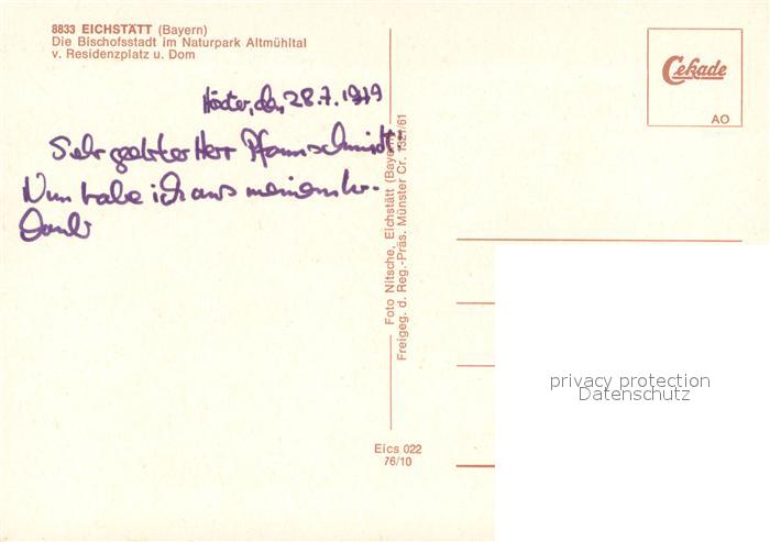 73724817 Eichstaett Oberbayern Residenzplatz und Dom Fliegeraufnahme postalisch nicht gelaufen Erhaltung siehe scans [WerneD78] KatCode: 11110009176123