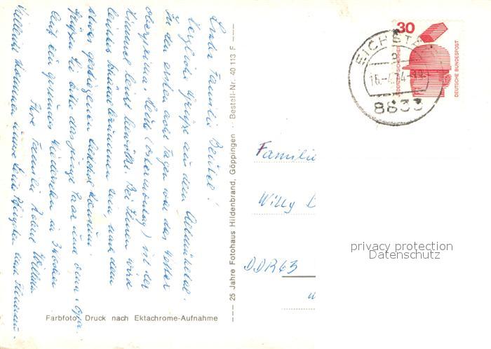73734975 alte Postkarte Eichstaett Oberbayern Stadtpanorama Williboldsburg Partie an der Altmuehl postalisch gelaufen Erhaltung siehe scans [FriedD77] KatCode: 11110009176123