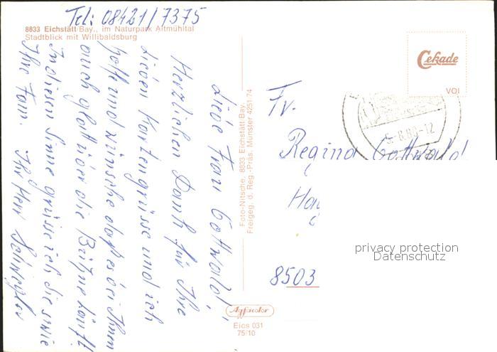 72238258 alte Postkarte Eichstaett Oberbayern Willibaldsburg postalisch gelaufen Erhaltung siehe scans KatCode: 11110009176123