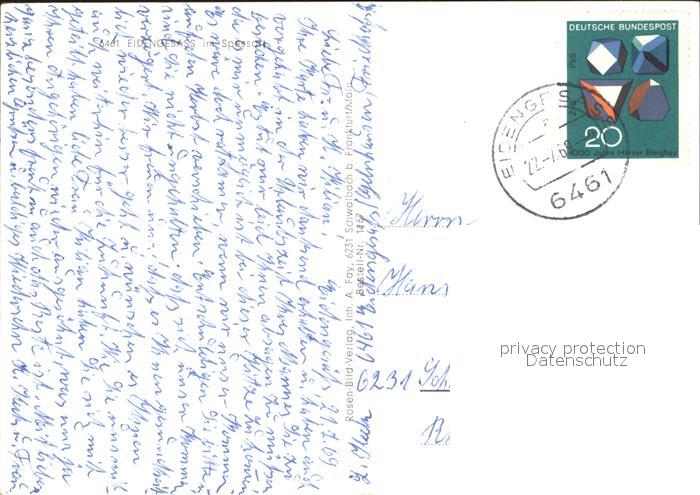 72125108 alte Postkarte Eidengesaess Gesamtansicht Naturpark Spessart Park Wappen postalisch gelaufen Erhaltung siehe scans KatCode: 11110006435018