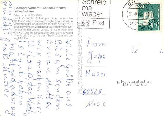 73073609 alte Postkarte Eidersperrwerk Fliegeraufnahme postalisch gelaufen Erhaltung siehe scans [WerneD78] KatCode: 11110001051129