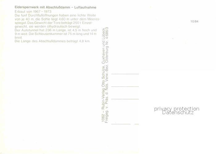72915978 Eidersperrwerk Fliegeraufnahme mit Abschlussdamm postalisch nicht gelaufen Erhaltung siehe scans [LiesaD40] KatCode: 11110001051129