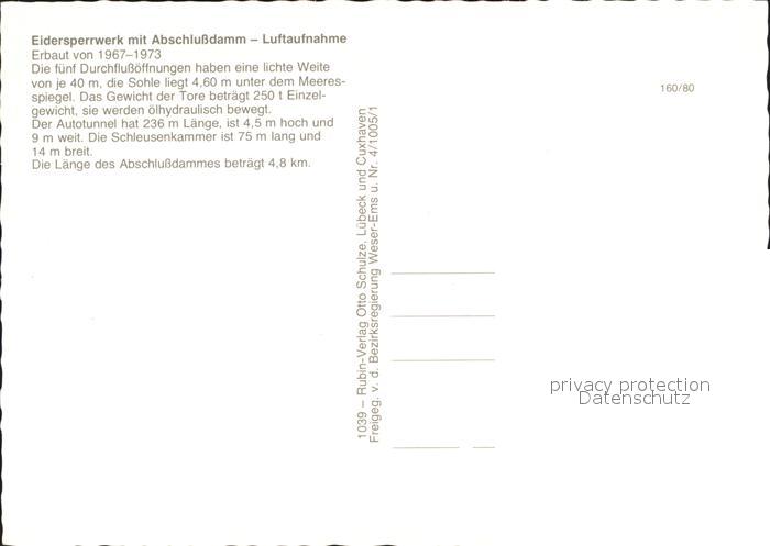 72002298 Eidersperrwerk Fliegeraufnahme mit Abschlussdamm postalisch nicht gelaufen Erhaltung siehe scans KatCode: 11110001051129