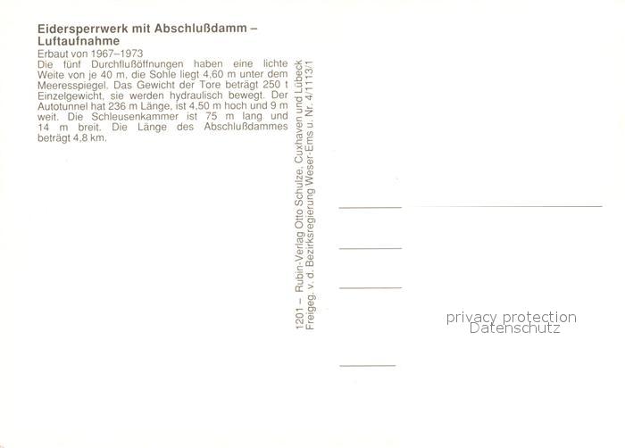73043184 Eidersperrwerk mit Abschlussdamm Fliegeraufnahme postalisch nicht gelaufen Erhaltung siehe scans [FriedD77] KatCode: 11110001051129