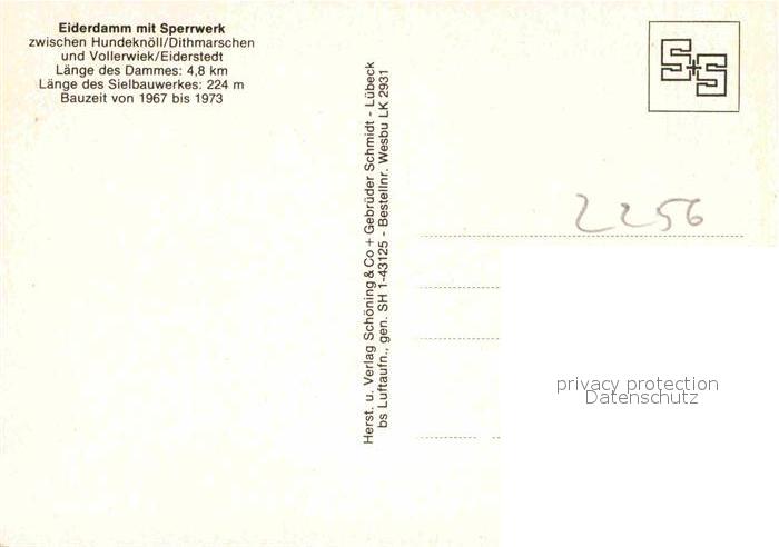72840531 Eiderstedt Eiderdamm mit Sperrwerk Fliegeraufnahme postalisch nicht gelaufen Erhaltung siehe scans [FriedD77] KatCode: 11110001054138