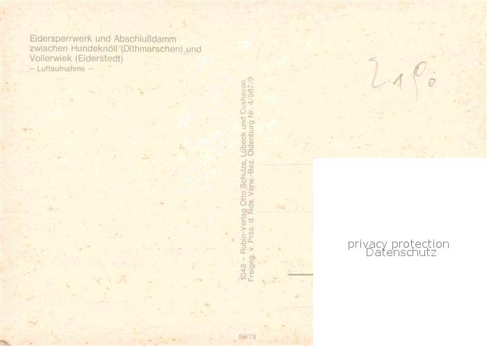 72840518 Eiderstedt Eidersperrwerk und Abschlussdamm zwischen Hundeknoell und Vollerwiek Fliegeraufnahme postalisch nicht gelaufen Erhaltung siehe scans [FriedD77] KatCode: 11110001054138