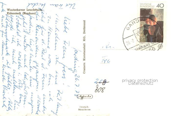 73781281 alte Postkarte Eiderstedt Westerhever Leuchtturm postalisch gelaufen Erhaltung siehe scans [FriedD77] KatCode: 11110001054138