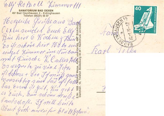 73941692 alte Postkarte Eidinghausen Bad Oeynhausen Sanatorium Bad Oexen postalisch gelaufen Erhaltung siehe scans [FriedD77] KatCode: 11110005770004