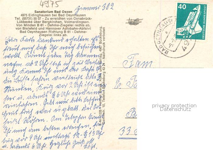 73695077 alte Postkarte Eidinghausen Sanatorium Bad Oexen Bergkirchen Volmerdingsen Wandelhalle Porta Westfalica Jordansprudel postalisch gelaufen Erhaltung siehe scans [WerneD78] KatCode: 11110005770004
