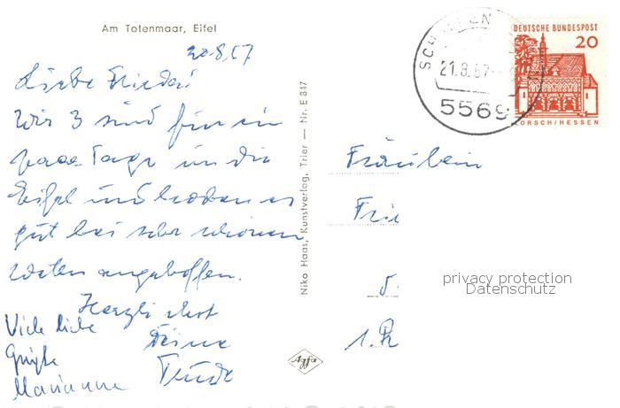 73833962 alte Postkarte Eifel Region Am Totenmaar postalisch gelaufen Erhaltung siehe scans [WerneD78] KatCode: 11110007141121