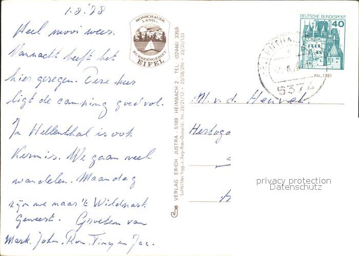 72410135 alte Postkarte Eifel Region Naturpark Nordeifel Blankenheim Urftsee Monschau Gemuend postalisch gelaufen Erhaltung siehe scans KatCode: 11110007141121