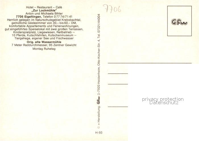 73600071 Eigeltingen Hotel Restaurant Cafe Zur Lochmuehle postalisch nicht gelaufen Erhaltung siehe scans [FriedD77] KatCode: 11110008335021