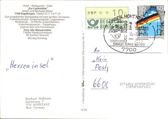 72142815 alte Postkarte Eigeltingen Hotel Restaurant Cafe Zur Lochmuehle Postkutsche postalisch gelaufen Erhaltung siehe scans KatCode: 11110008335021