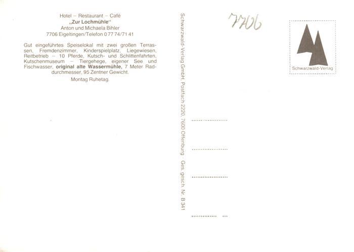 73926659 Eigeltingen Hotel Restaurant Zur Lochmuehle Pferdekutschen postalisch nicht gelaufen Erhaltung siehe scans [WerneD78] KatCode: 11110008335021